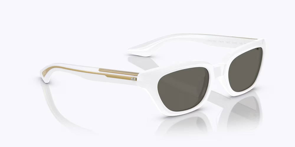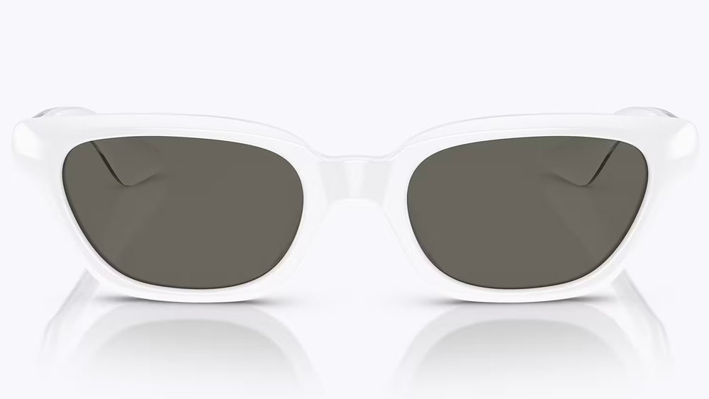 These vintage-inspired sunglasses feature a clean, minimalist design with a glossy white acetate frame. The rounded rectangular silhouette offers a classic, timeless look that would suit many face shapes. The dark grey lenses provide excellent sun protection while maintaining a sleek aesthetic. The frame has a substantial yet balanced construction with smoothly curved temple arms and integrated hinges. The overall design speaks to both retro influence and contemporary styling, making these sunglasses a versatile accessory suitable for any casual or formal occasion.