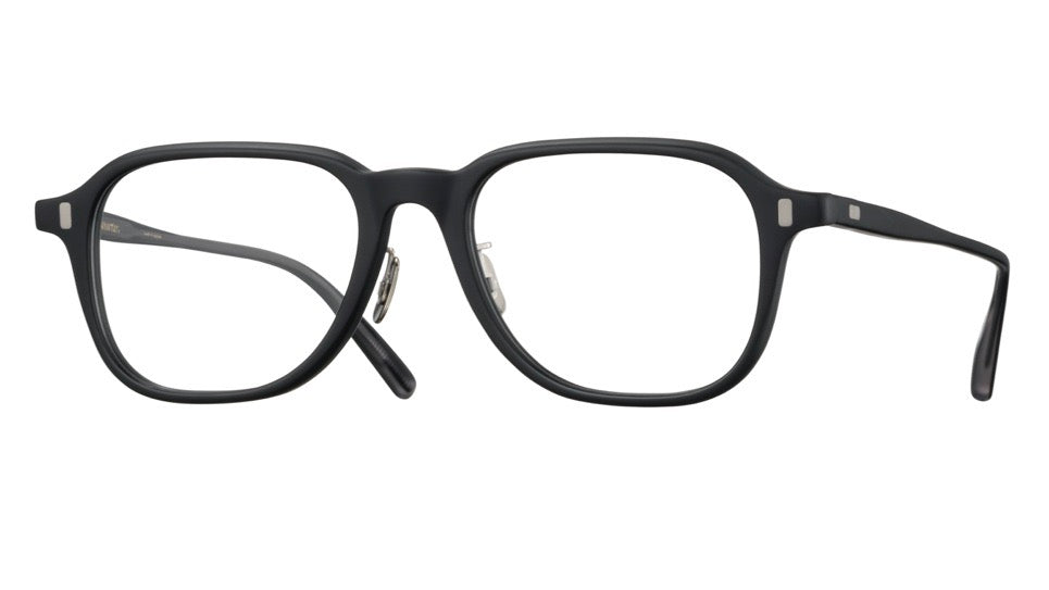 Modern rectangular eyeglasses with a sophisticated black metal and plastic composite frame. Features a sleek design with subtle metal accents at the temple joints. The frame has a professional, minimalist aesthetic with clean lines and a contemporary silhouette. The matte black finish gives it a refined, understated look suitable for both formal and casual settings.