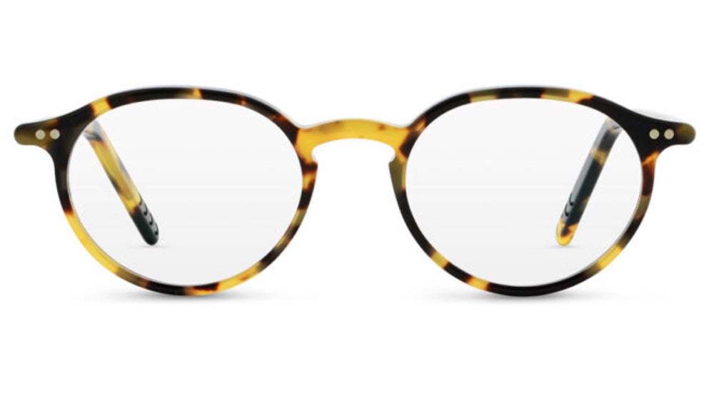 These are elegant round-framed prescription glasses featuring a classic tortoiseshell pattern in honey and dark brown tones. The frames have a sophisticated vintage-inspired design with subtle metal rivets at the temples. The round lenses are perfectly proportioned, creating a timeless intellectual look. The tortoise pattern shows beautiful variations in color and depth, making each pair subtly unique. The construction appears to be high-quality acetate with smooth finishing and excellent attention to detail.