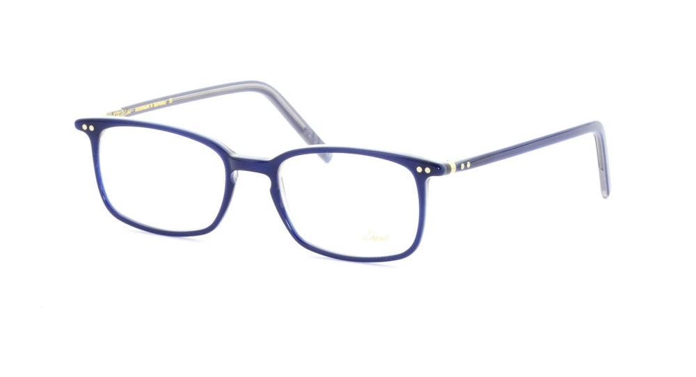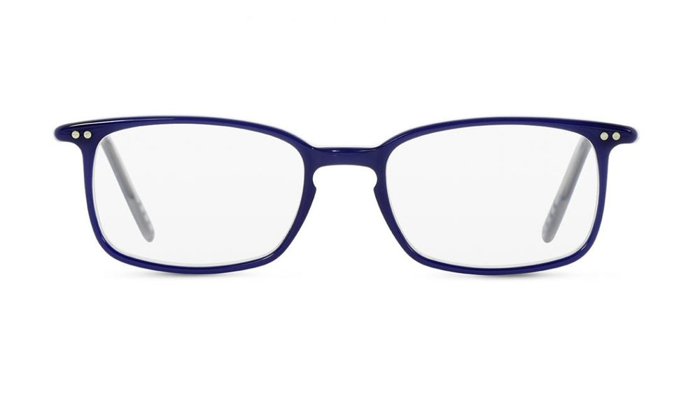 Classic rectangular eyeglasses in a deep navy blue color with a sophisticated minimalist design. The frame features subtle metallic rivets at the temples for added detail. The silhouette is timeless and versatile, suitable for both professional and casual wear. The frame has clean lines and a balanced proportion that would complement most face shapes. The even coloring and matte finish give these glasses a refined, understated elegance.