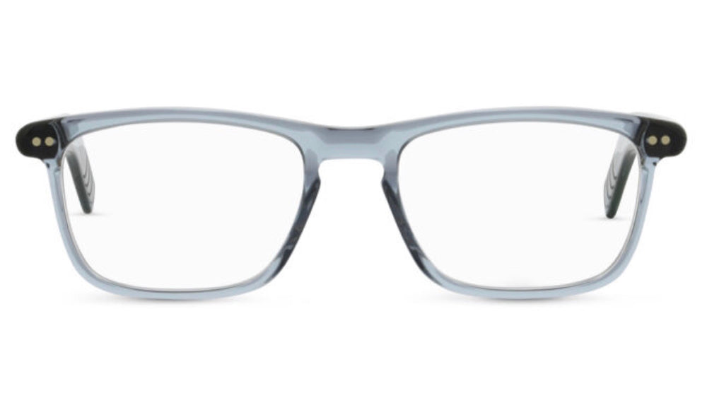Classic rectangular frames with a sophisticated translucent grey acetate construction. The design features a clean minimalist aesthetic with subtle black temple tips adding a refined contrast. The medium-thickness frame has a traditional saddle bridge and maintains a professional, timeless look suitable for everyday wear. The frame exhibits excellent craftsmanship with smooth transitions and balanced proportions.