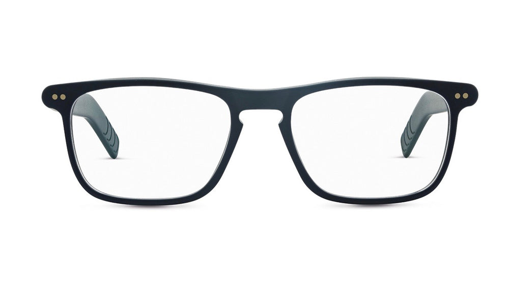 Classic rectangular frames in matte black with a timeless design. Features subtle studded details at the temples and clean architectural lines. The medium-thick frame has a professional yet fashionable aesthetic with a comfortable saddle bridge. The straight brow line and slightly tapered temple arms create a sophisticated silhouette suitable for both casual and formal settings.