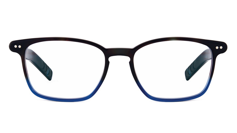 These sophisticated rectangular frames feature a striking gradient from black to blue, creating a modern two-tone effect. The frame has a professional yet fashionable design with clean lines and subtle metal accents. The temples feature comfortable rubber tips for extended wear. The glasses maintain a slim profile while offering durability and style perfect for both professional and casual settings.