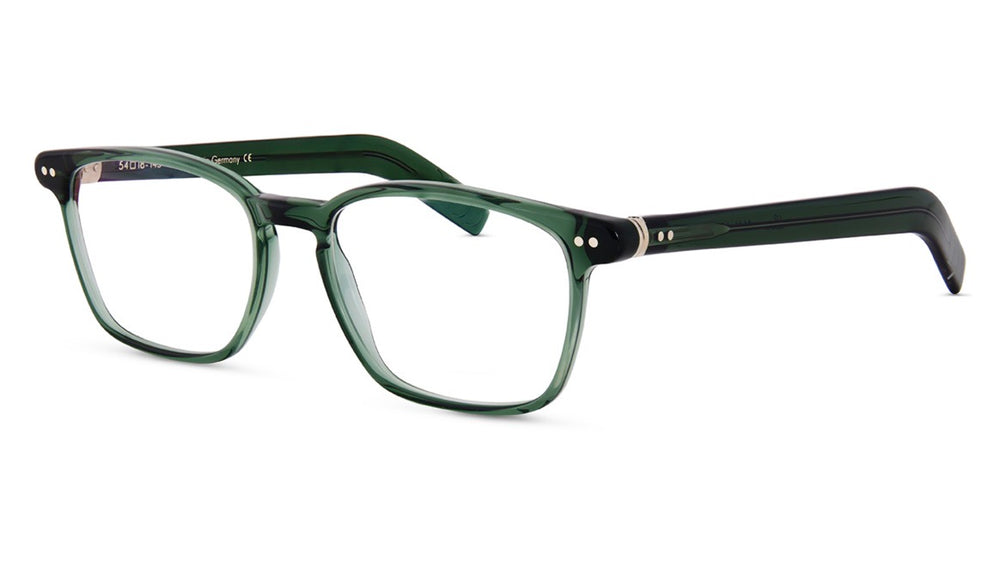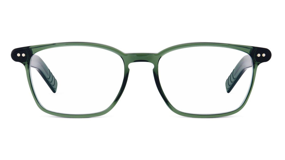 Classic rectangular wayfarer-style frames in a translucent sage green color. Features a subtle vintage-inspired design with rounded corners and traditional rivets on the front corners. The frames have a sophisticated matte finish and clean lines that would suit professional or casual wear. The temple arms appear to have a slightly textured pattern for added grip and style.
