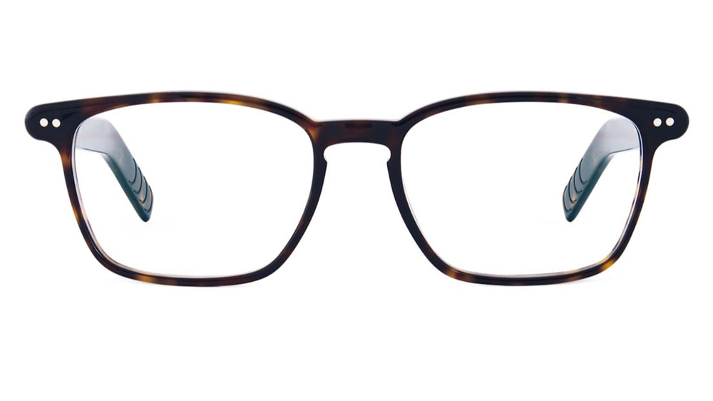 Classic rectangular wayfarer-style eyeglasses with a sophisticated tortoiseshell acetate frame. Features a traditional straight browline, double rivets at the temples, and clean architectural lines. The frame exhibits beautiful depth and dimension in the tortoise coloring, transitioning between darker and lighter amber tones. The design strikes a perfect balance between vintage inspiration and contemporary styling.