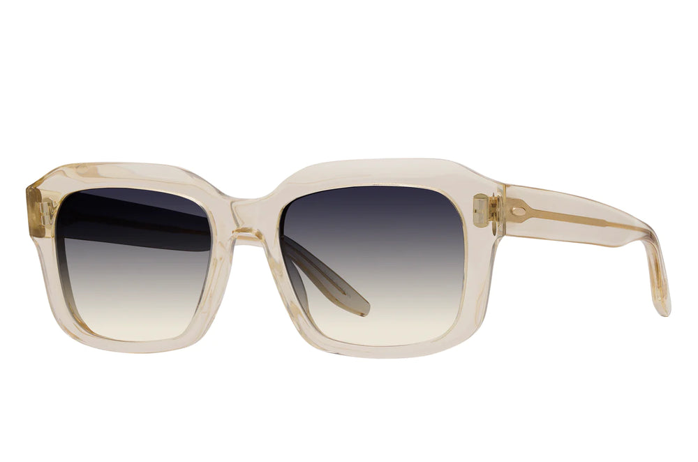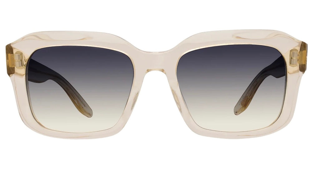 Modern oversized square sunglasses featuring a translucent champagne-colored acetate frame with a luxurious chunky design. The gradient grey lenses transition smoothly from dark at the top to lighter at the bottom. The frame has a sophisticated architectural quality with clean lines and substantial temple arms that match the front frame color. The overall aesthetic is elegant and contemporary, perfect for high-end fashion wear.