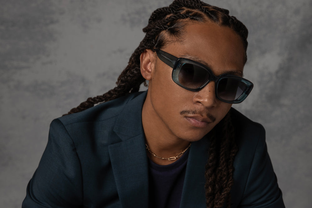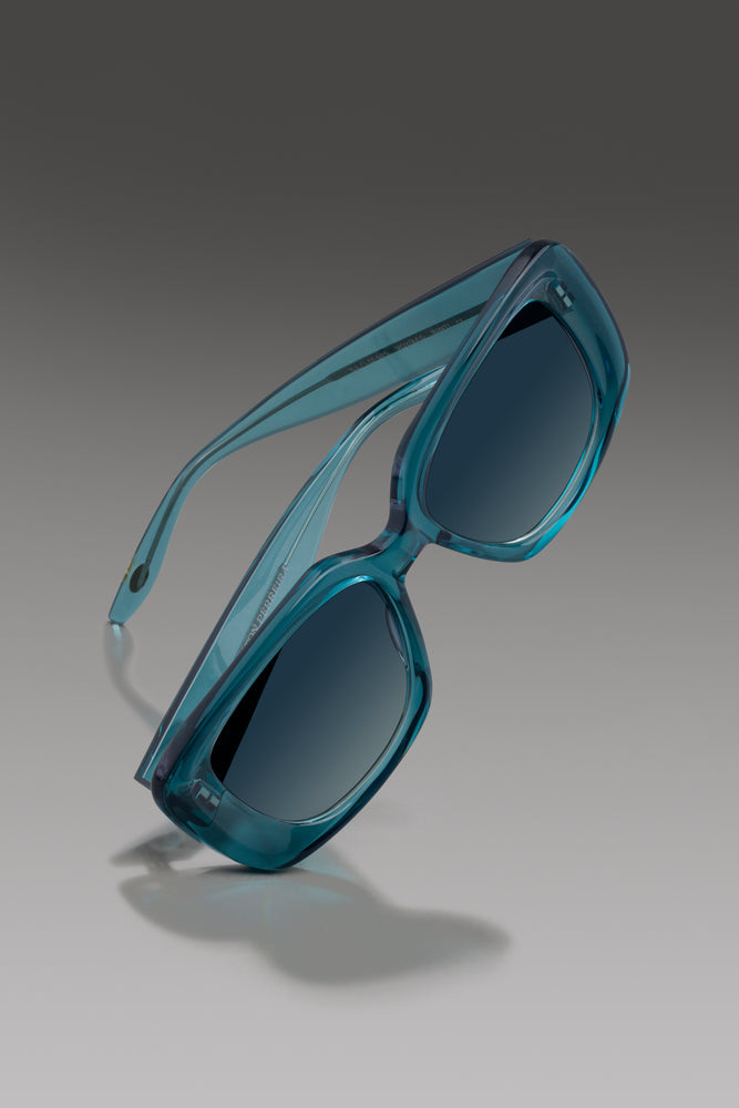 These are luxurious oversized rectangular sunglasses in a striking translucent turquoise blue color. The frames feature a bold, architectural design with thick temples and generous lens coverage. The gradient blue lenses fade from dark to light, offering sophisticated sun protection while maintaining visibility. The chunky silhouette and glamorous proportions suggest high-end designer styling, perfect for making a fashion statement while providing excellent eye protection. The uniform color treatment across the frame creates a modern, monochromatic look thats both elegant and eye-catching.