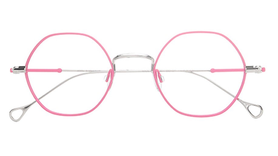 Delicate round eyeglasses featuring a thin pink metal frame with silver accents. The design combines vintage-inspired circular lenses with modern minimalist aesthetics. The frame has a distinctive dual-tone appearance with pink rims and silver temple arms and bridge. The lightweight construction and nose pads ensure comfortable wear while maintaining an artistic, contemporary look that would suit various face shapes.