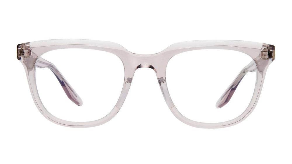 These are sophisticated square-framed glasses with a translucent grey acetate construction. The frames feature a contemporary chunky design with clean lines and a modern aesthetic. The transparent grey coloring gives them a subtle, professional look while maintaining a fashionable edge. The temple arms smoothly integrate with the front frame, creating a cohesive design. These glasses have a refined yet understated presence that would suit both casual and formal settings.