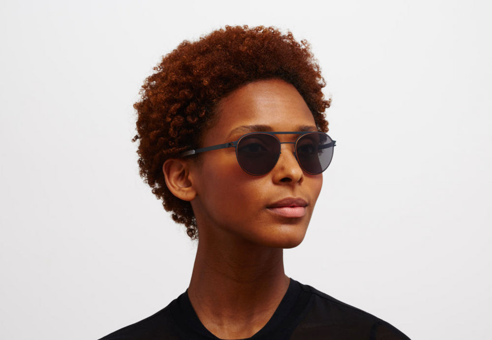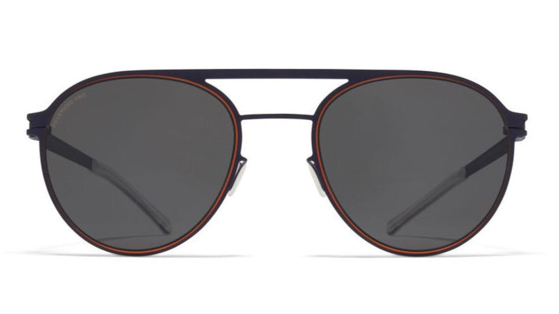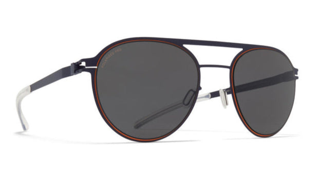 These sleek aviator-style sunglasses feature a sophisticated double-bridge design with a thin black metal frame and subtle orange accent trim around the lenses. The frame has a modern minimalist aesthetic with clean lines and an understated matte black finish. The grey-tinted lenses are complemented by thin nose pads for comfort. The overall design strikes a perfect balance between classic aviator styling and contemporary urban sophistication.