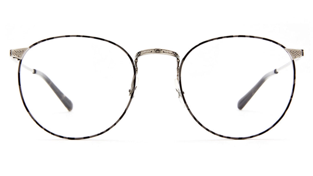 These are elegant round metal-framed glasses with a classic vintage-inspired design. The frame features delicate silver metalwork with subtle decorative elements on the temple arms. The thin profile and minimalist aesthetic give these glasses a sophisticated, intellectual look. The round silhouette is perfectly balanced with thin temple arms and a refined nose bridge, making them suitable for both casual and formal wear. The clear lenses and silver finish create a timeless appeal that would complement many face shapes and style preferences.