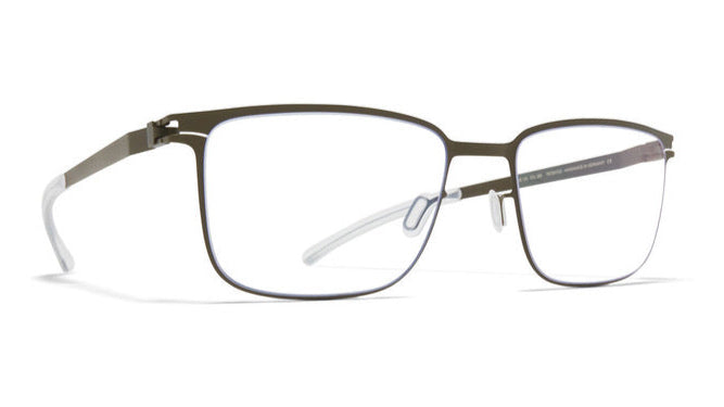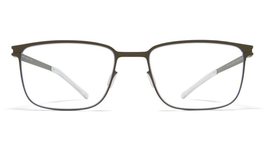 Modern minimalist rectangular frames with a sleek metallic bronze finish and contrasting white temple arms. The design features a slim profile with clean lines and a professional aesthetic. The frames sophisticated engineering is evident in its lightweight construction and precise angular details, making it suitable for both business and casual wear.