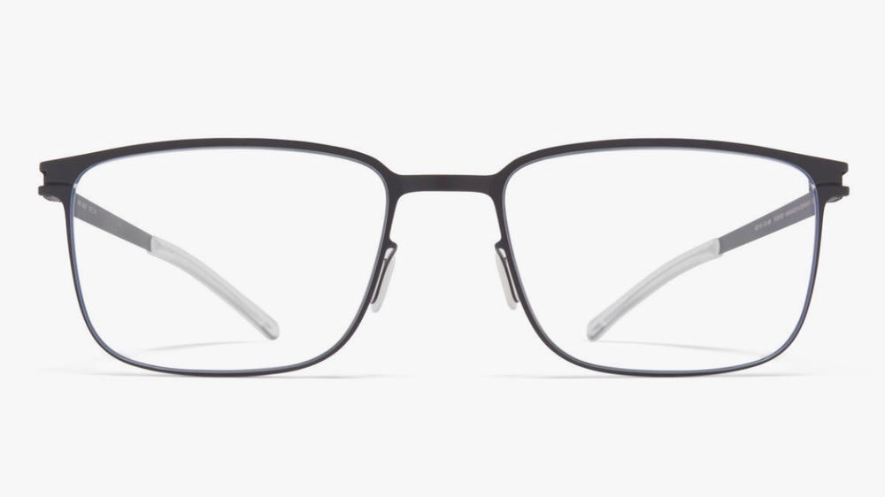 Modern minimalist rectangular metal frames with a sleek matte black finish. Features an ultra-lightweight construction with thin temple arms and a clean architectural design aesthetic. The frames have a sophisticated professional look with precise angular lines and a contemporary floating lens appearance. The nose pads are adjustable for comfort and the temple tips appear to have a subtle curve for secure fit.