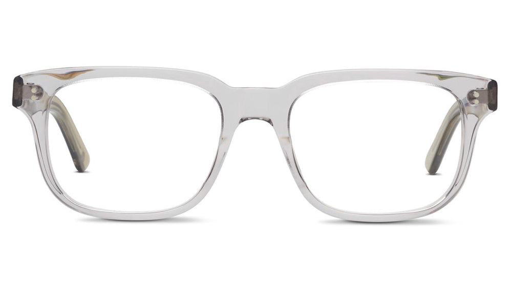 Classic rectangular transparent grey frames with a modern minimalist design. The frames feature a clean, architectural silhouette with straight lines and subtle angles. Made from high-quality transparent plastic with a sophisticated matte finish. The temple arms smoothly integrate with the front of the frame, creating a cohesive look. These glasses have a contemporary professional aesthetic that would suit many face shapes and style preferences.