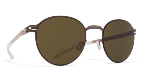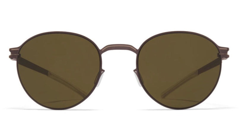 These are sleek and minimalist round sunglasses with a bronze metallic finish throughout the frame. The design features a thin wire frame construction with a clean, modern aesthetic. The lenses are a warm brown tint and the overall build appears lightweight yet durable. The temple arms are slim and streamlined, maintaining the sophisticated look. The nose pads appear adjustable for comfort, and the entire piece has an understated luxury appeal that would suit both casual and formal wear.