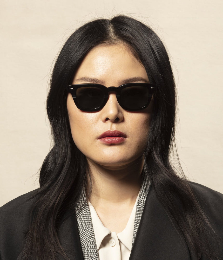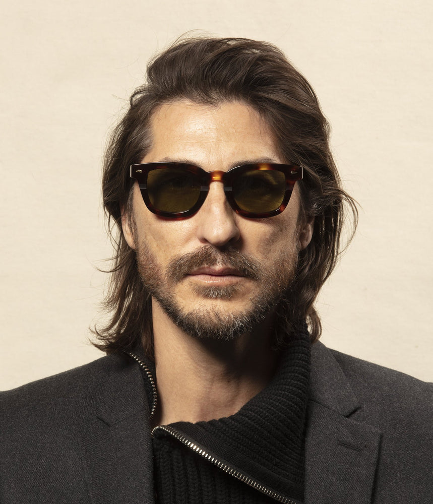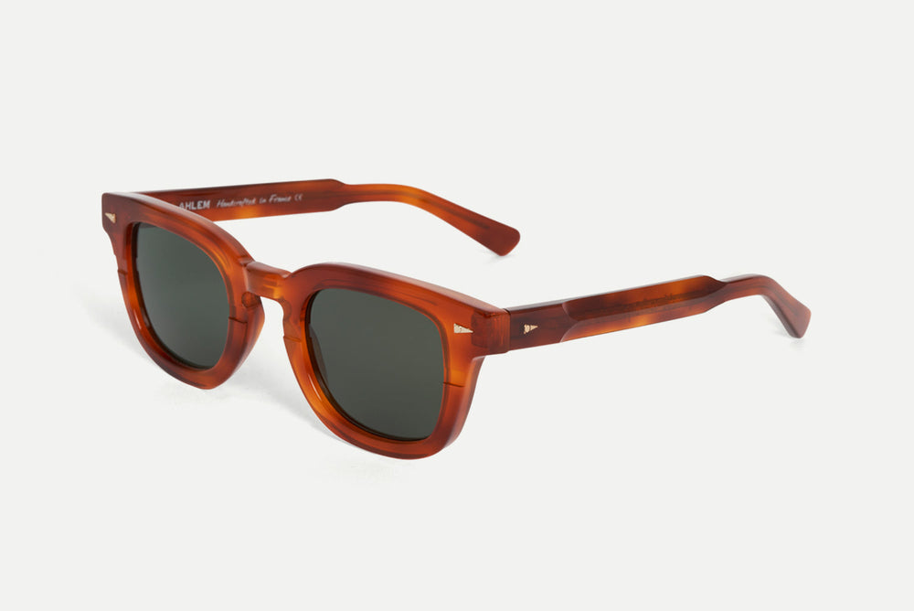 Classic square wayfarer-style sunglasses with a substantial tortoise acetate frame in warm honey-brown tones. Features a bold, architectural silhouette with clean lines and vintage-inspired styling. The deep green lenses provide excellent sun protection while maintaining true color perception. The frame has a luxurious, translucent quality typical of high-end acetate, with subtle variations in the tortoiseshell pattern. The design includes minimal metal accents at the temples, creating a refined, timeless aesthetic suitable for any face shape.