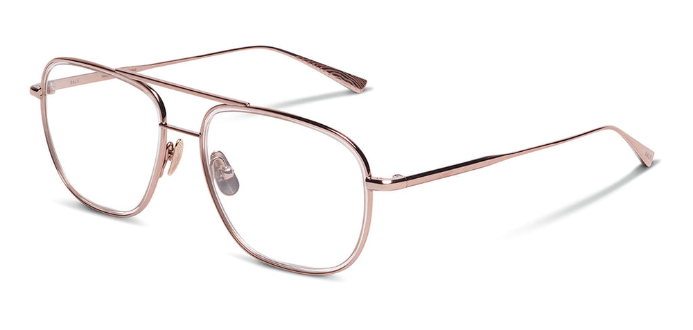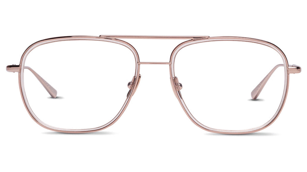 Elegant rose gold aviator-style frames with a sophisticated double bridge design. The thin metal construction gives these glasses a lightweight, refined appearance. The classic aviator silhouette features smooth curves and well-proportioned lens shapes, while the delicate nose pads ensure comfortable wear. The overall design strikes a perfect balance between vintage inspiration and contemporary styling, making them suitable for both professional and casual settings.