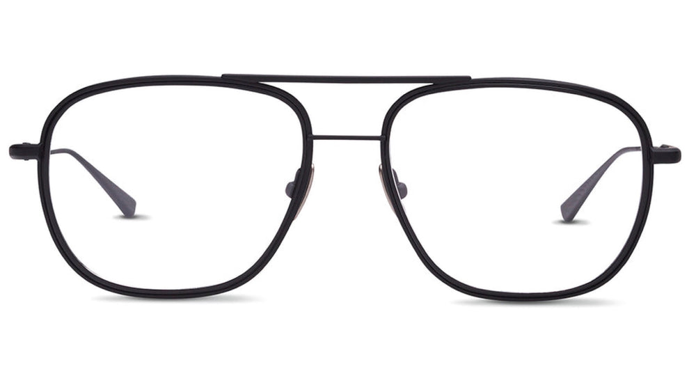 These stylish aviator frames feature a sophisticated double-bridge design with a sleek black metal construction. The classic aviator silhouette is updated with a slightly squared-off shape and clean lines, creating a contemporary yet timeless look. The frames have a professional matte black finish with subtle angular details around the lenses and temples. The lightweight metal construction includes adjustable nose pads for comfort, while the thin temple arms maintain an elegant profile. Perfect for both professional settings and casual wear, these glasses project a refined, understated confidence.
