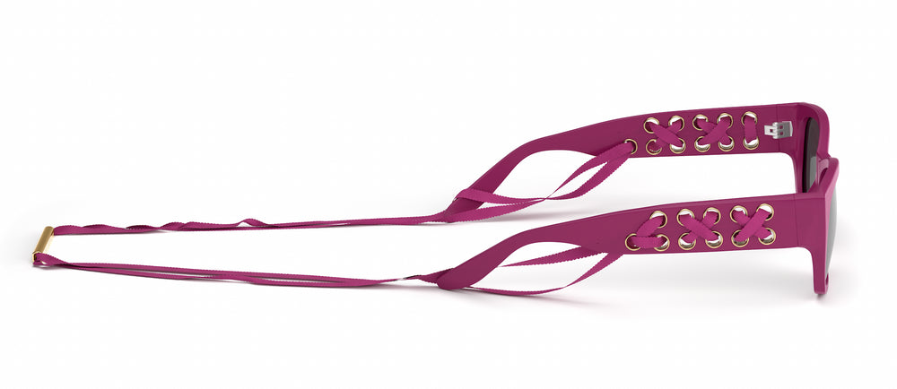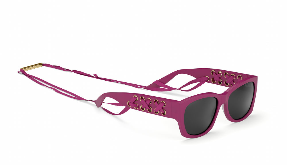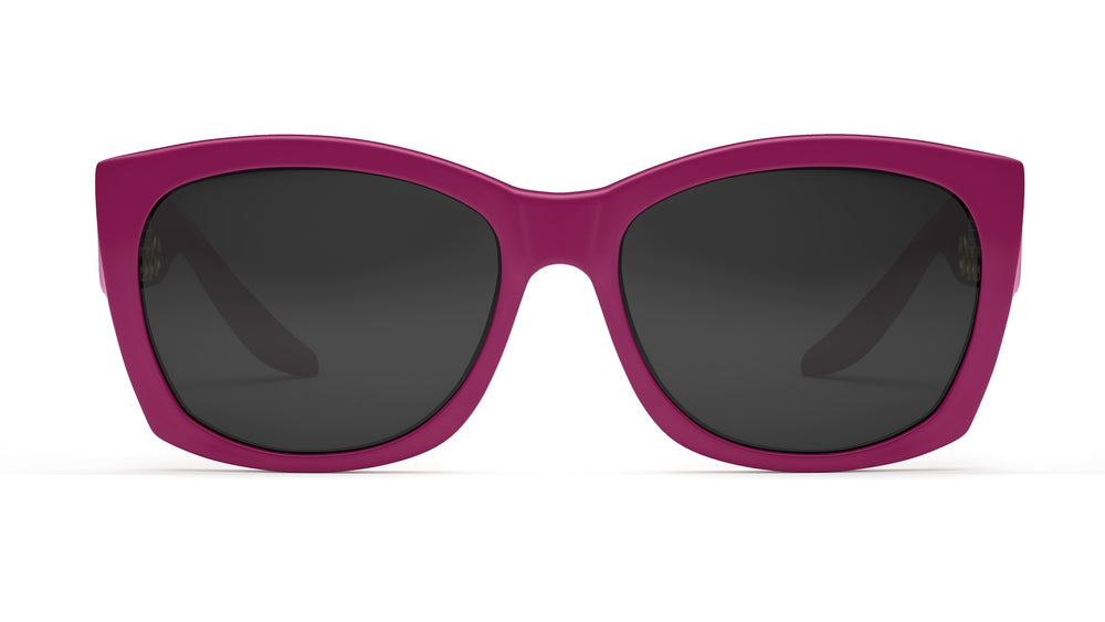 Stylish pink cat-eye sunglasses featuring a bold, retro-inspired silhouette with a thick, magenta-colored frame. The dark lenses provide excellent sun protection while maintaining a chic, contemporary look. The frames have a modern, angular interpretation of the classic cat-eye shape, with smooth curves and substantial temple arms that complement the overall design. The sunglasses exude a sophisticated, feminine aesthetic perfect for making a fashion statement while offering practical sun protection.