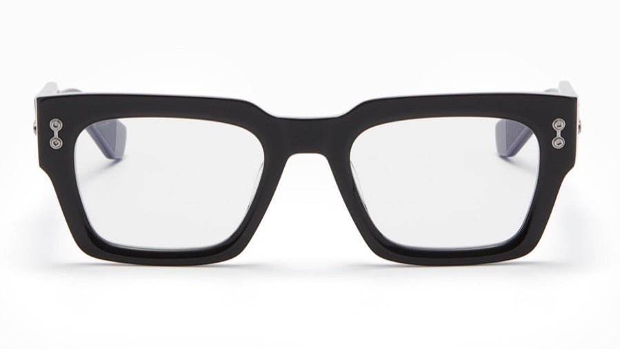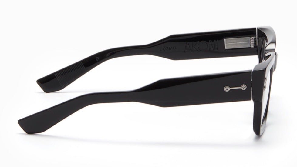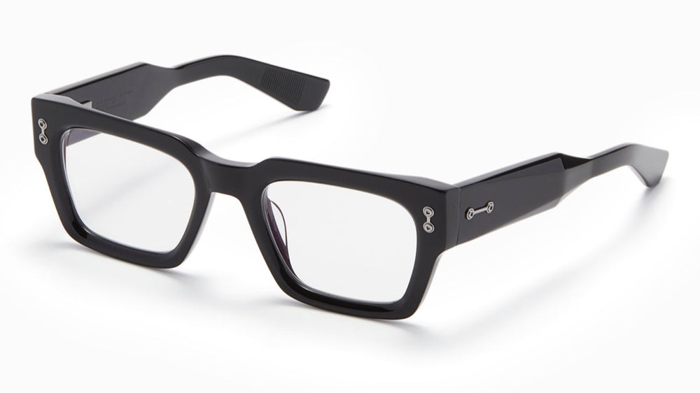 Bold, chunky square frames with a contemporary architectural design. The frame features a substantial thick acetate construction with clean geometric lines and a prominent bridge. Small metallic details at the temples add subtle sophistication. The oversized square silhouette makes a strong style statement while maintaining a classic sensibility. The solid black colorway and thick construction give these glasses a substantial, premium feel suited for both professional and fashion-forward settings.