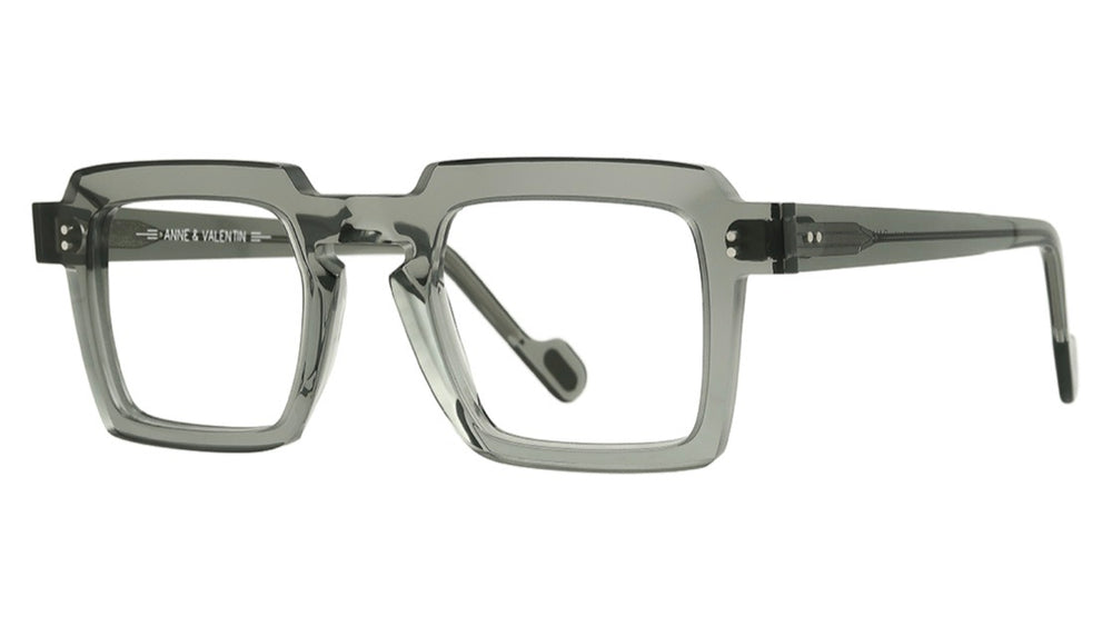 These are bold, avant-garde geometric frames with a distinctive squared-off design and strong architectural presence. The frames feature a thick, translucent grey acetate construction with sharp angular corners and a pronounced bridge. The chunky silhouette creates a striking, intellectual aesthetic that would appeal to those seeking a bold, fashion-forward look. The temples maintain the substantial build of the front frame, creating a cohesive design statement.