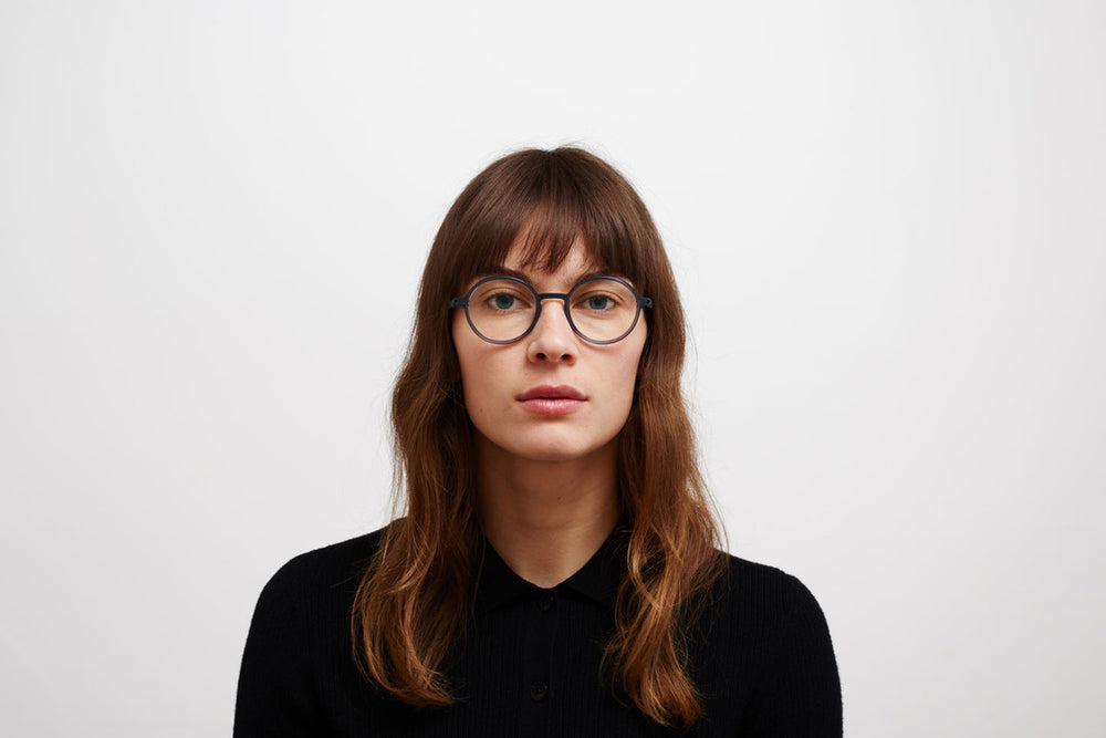 Modern circular eyeglasses featuring a sophisticated matte grey metal construction with a minimalist design aesthetic. The frame has a distinctive two-tone effect with slightly lighter grey inner rims contrasting with darker outer edges. The round shape is perfectly symmetrical and contemporary, while maintaining a classic appeal. The construction appears lightweight yet durable, with clean lines and seamless connections between components.