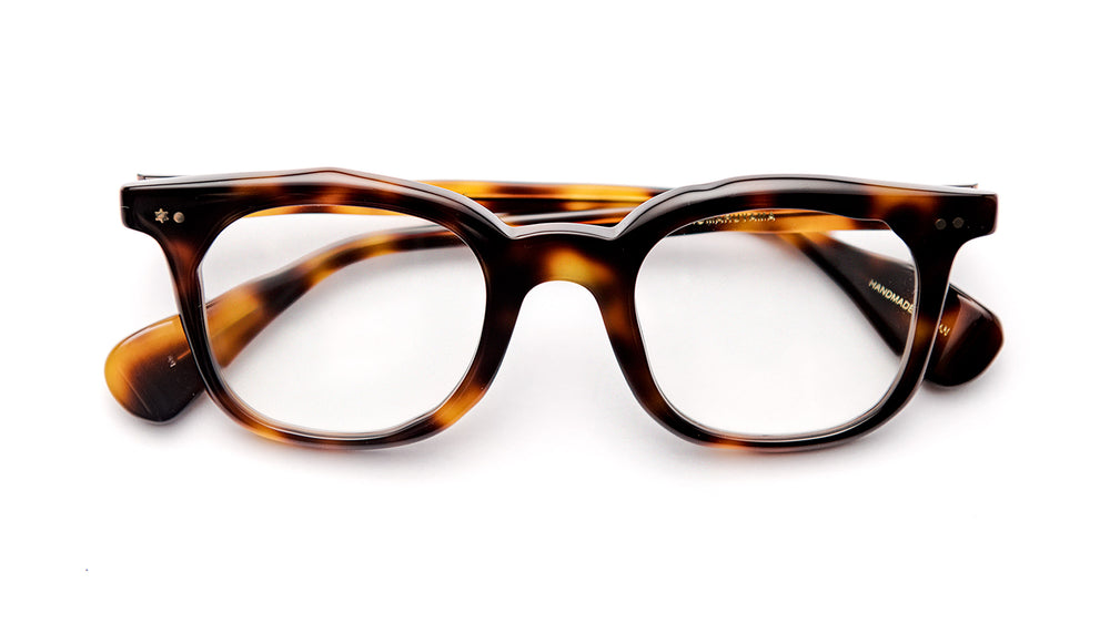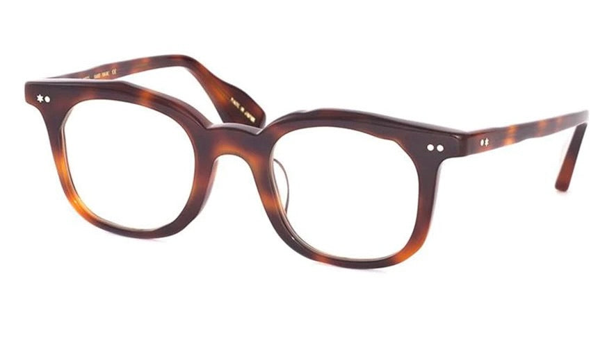 Classic squared tortoiseshell acetate frames featuring a warm brown and amber mottled pattern throughout. The frames have a sophisticated vintage-inspired design with subtle metal rivets at the front corners and temples. The substantial but not overly thick frame construction provides durability while maintaining an elegant profile. The design showcases traditional craftsmanship with refined details like the smooth saddle bridge and gently curved temple arms that provide comfortable wear.