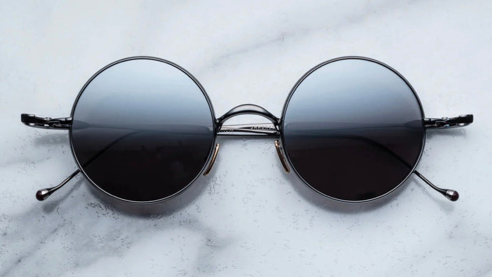Classic minimalist round sunglasses with a sleek black metal frame and matching black lenses. The design features delicate temple arms and a simple nose bridge construction, embodying a timeless John Lennon-inspired aesthetic. The thin profile and dark colorway create an elegant, understated look suitable for any face shape. The sunglasses appear to be made with high-quality craftsmanship, with attention to detail in the finishing of the metal components. The perfectly circular lenses and slim frame give these sunglasses a sophisticated, vintage-inspired character.