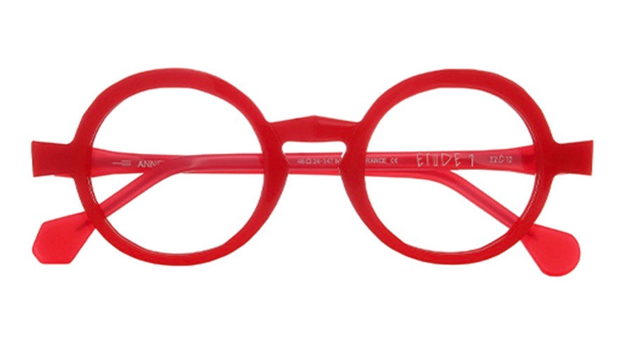 A striking pair of bold round eyeglasses with a distinctive retro-academic aesthetic. The frame features a chunky, statement-making red plastic construction throughout, with perfectly circular lenses and clean lines. The design has a vintage-inspired scholarly look while maintaining a contemporary edge through its vibrant red coloring. The temples are straight and substantial, matching the bold nature of the front frame. The saddle bridge provides comfortable weight distribution and adds to the classic appeal of these statement glasses.