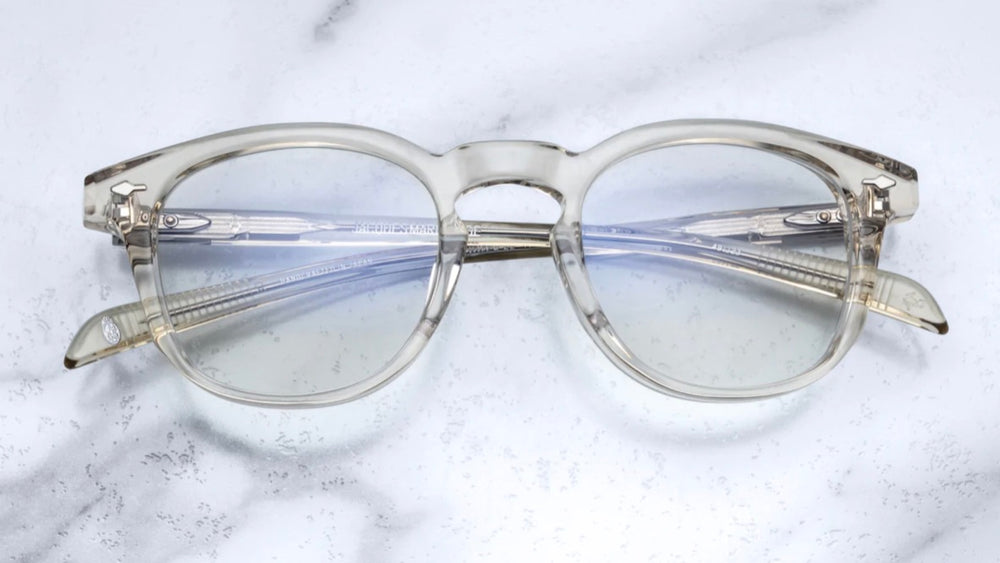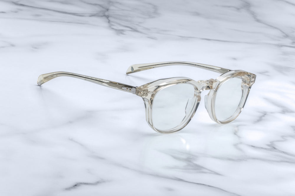 Sophisticated transparent grey acetate frames with a classic square silhouette. Features a modern interpretation of the traditional P3 shape with a subtle keyhole bridge. The crystal-clear acetate material creates an elegant, lightweight appearance while maintaining structural integrity. The design exhibits clean lines and balanced proportions, making it suitable for both casual and formal settings. The transparent grey coloring adds a contemporary touch while remaining versatile and professional.