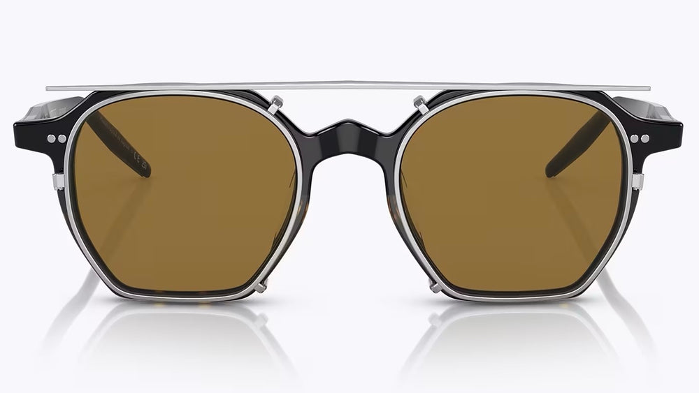 These sophisticated geometric sunglasses feature a distinctive double-bar bridge design with a sleek metal frame construction. The frames combine a black finish with silver accents, creating an elegant contrast. The angular geometric shape offers a modern, architectural aesthetic while brown-tinted lenses provide classic sun protection. The design includes subtle metal nose pads and slim temple arms, making for a refined, contemporary look that balances style with functionality. The overall silhouette has an intellectual, artistic quality thats both timeless and fashion-forward.