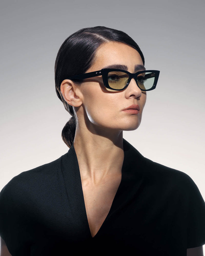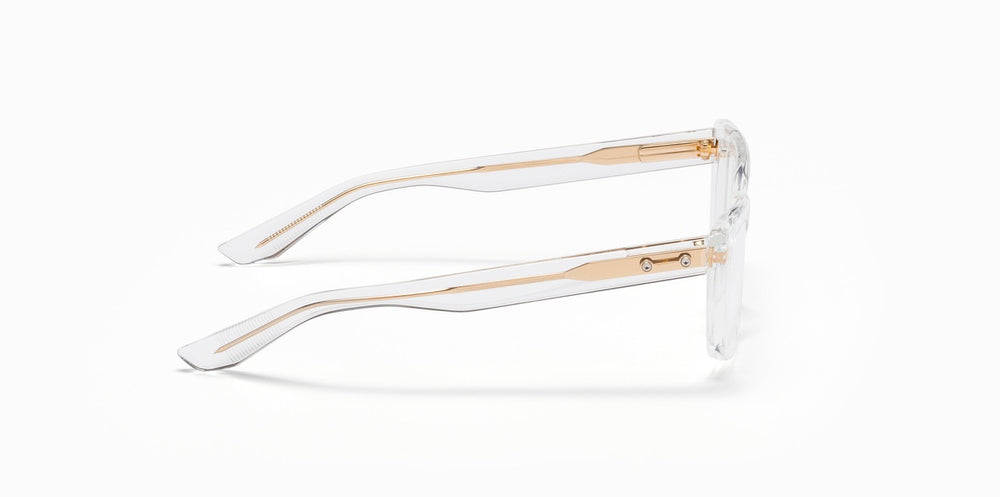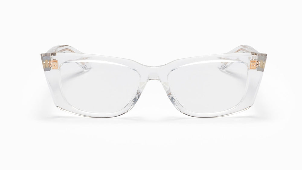 Clear crystal acetate rectangular frames with a modern minimalist design. The transparent material gives these frames a light, airy appearance while maintaining a sturdy construction. The clean lines and seamless construction create a sophisticated, contemporary look suitable for both professional and casual settings. The translucent frame material adds a subtle elegance while ensuring durability and comfort.
