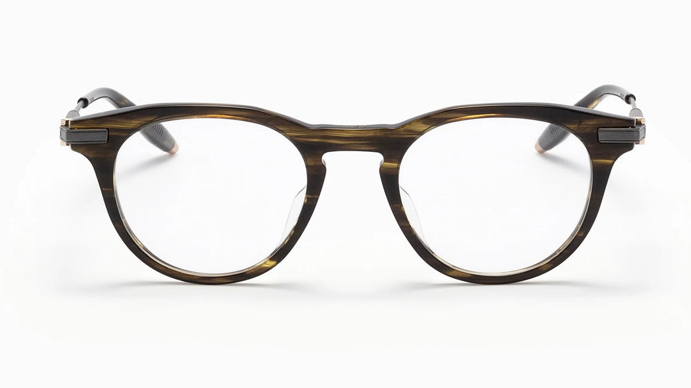 This elegant round-framed prescription eyewear features a sophisticated tortoiseshell pattern in warm brown tones. The frames have a classic vintage-inspired design with modern touches, including subtle metal accents at the hinges. The polished finish and well-balanced proportions create a timeless aesthetic suitable for both casual and formal wear. The design showcases excellent craftsmanship with smooth transitions between materials and a cohesive overall look.