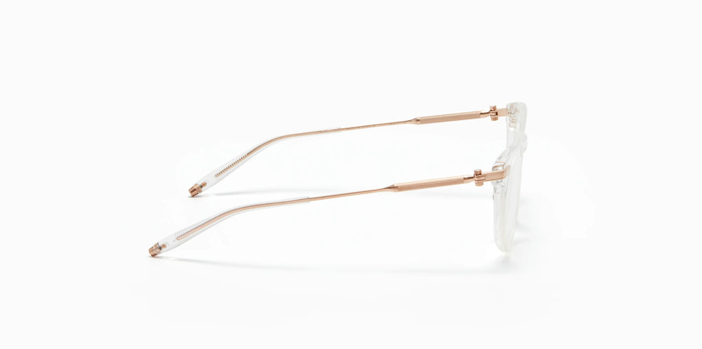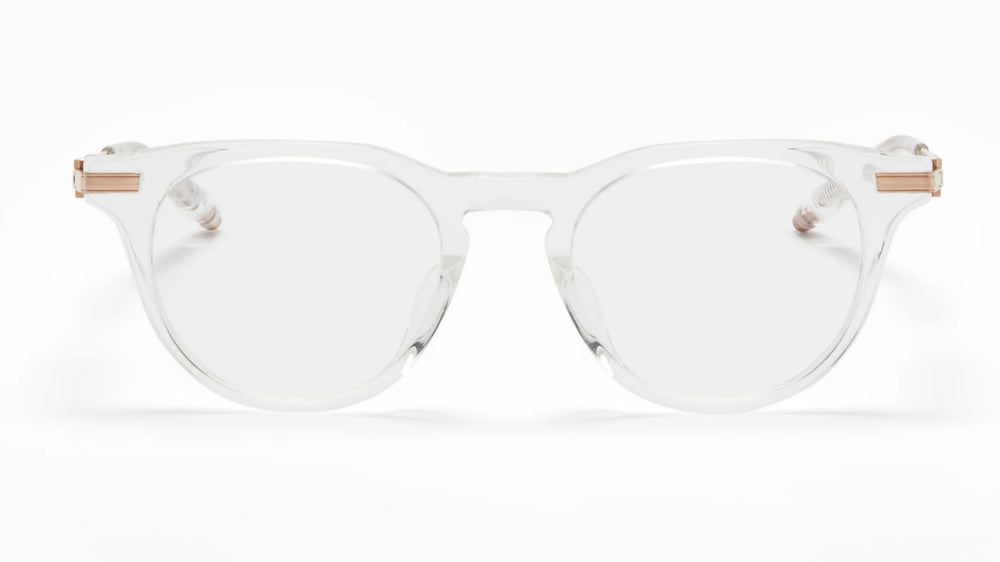 These stylish transparent eyeglasses feature a modern round frame design with a clean, minimalist aesthetic. The crystal-clear plastic construction gives them a lightweight, sophisticated look. The frames are accented with elegant gold-toned metal temple arms, creating a subtle contrast. The saddle bridge provides comfortable nose support, while the overall design balances contemporary style with classic elements. The transparent frame material creates an almost floating appearance for the lenses, making these glasses both fashionable and versatile for everyday wear.