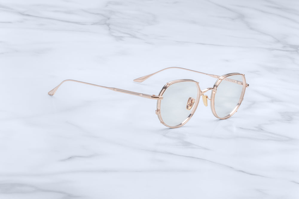 Elegant round-framed eyeglasses in a sophisticated bronze/rose gold finish with delicate metalwork. The thin wire frame features subtle detailing at the rim edges and temple hinges. The classic proportions and refined aesthetic make these glasses a timeless piece suitable for both formal and casual wear. The frame demonstrates excellent craftsmanship with precise metalwork and balanced design elements characteristic of luxury eyewear.