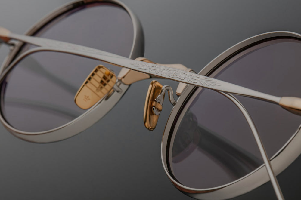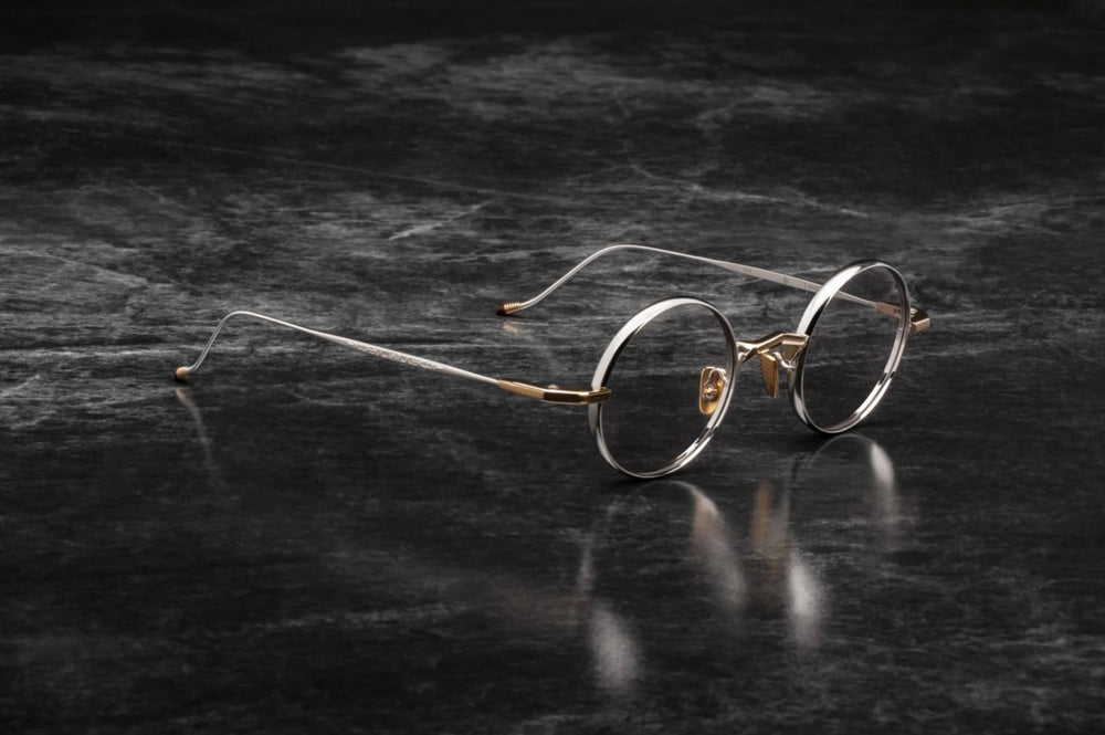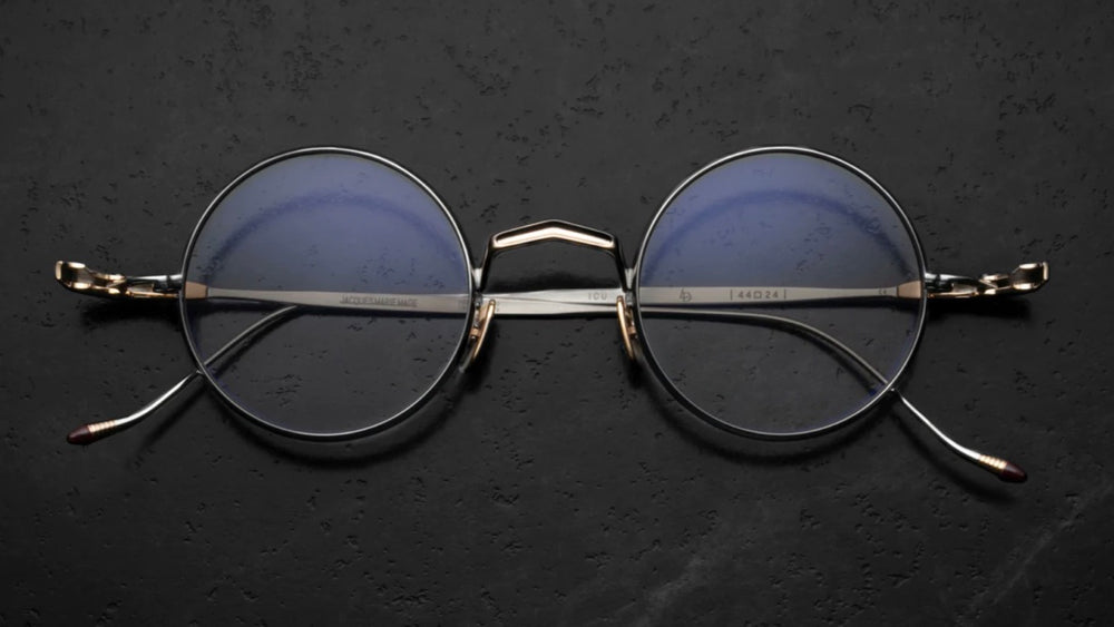 A sophisticated pair of vintage-inspired round spectacles featuring a delicate metal frame with a black finish and subtle blue-tinted lenses. The design showcases elegant proportions with thin temple arms and a refined nose bridge, creating a timeless intellectual aesthetic. The glasses demonstrate excellent craftsmanship with precise detailing and high-quality metal construction throughout, exemplifying classic eyewear artistry.