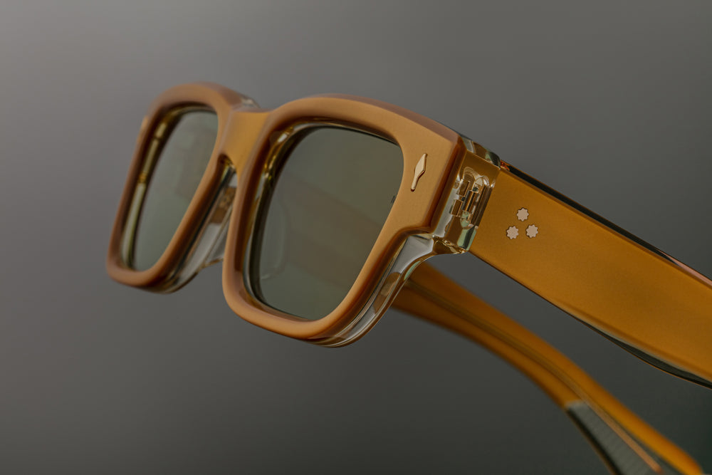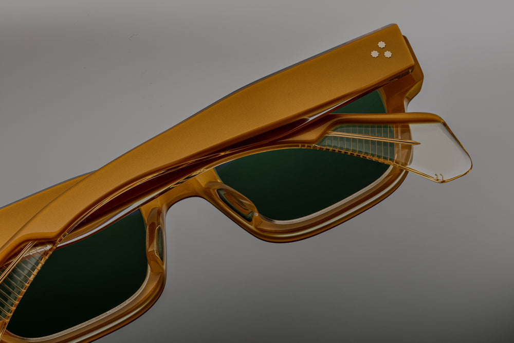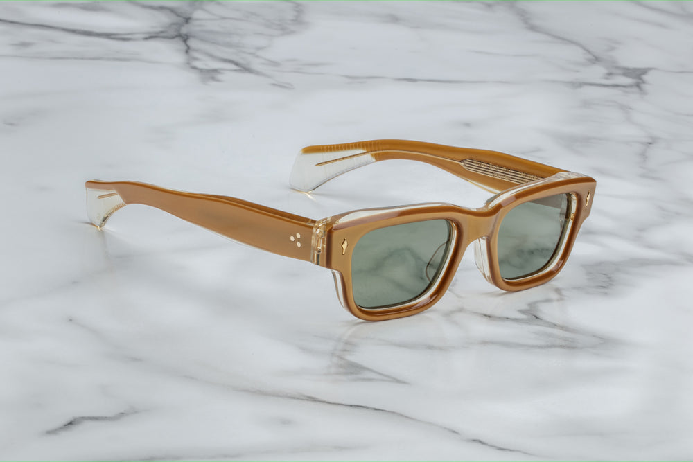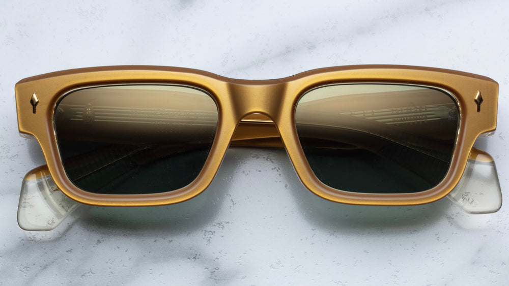 A luxurious pair of chunky acetate sunglasses in a sophisticated matte bronze/champagne colorway. The bold, architectural square frame features a substantial build with clean geometric lines and a distinctive flat-top design. The temple arms are relatively wide and complement the substantial frame proportions. The overall aesthetic is premium and vintage-inspired, with an air of 1960s Hollywood glamour updated for contemporary tastes. The gradiated brown lenses add to the classic appeal while providing modern sun protection.