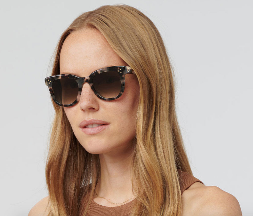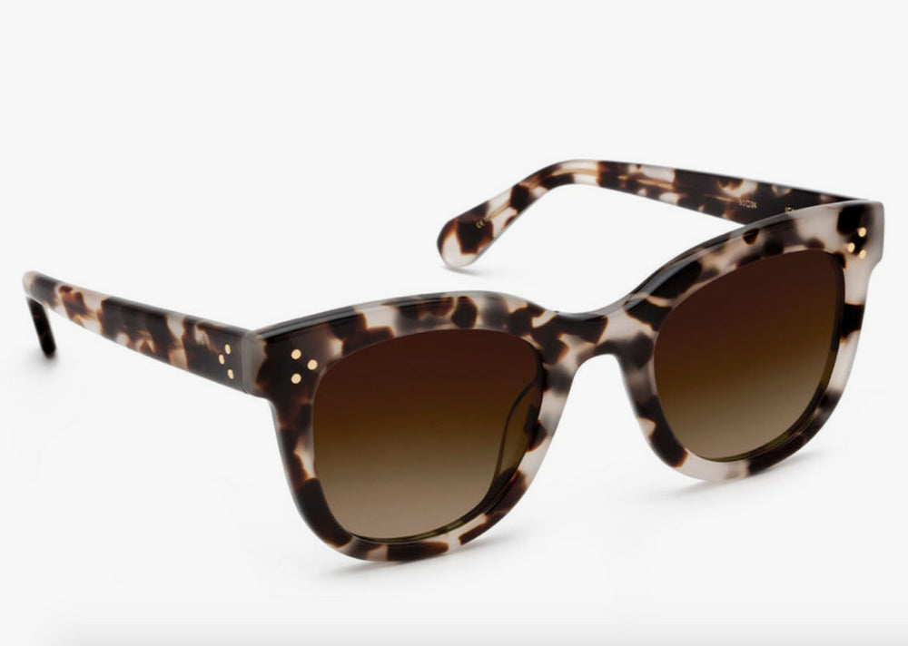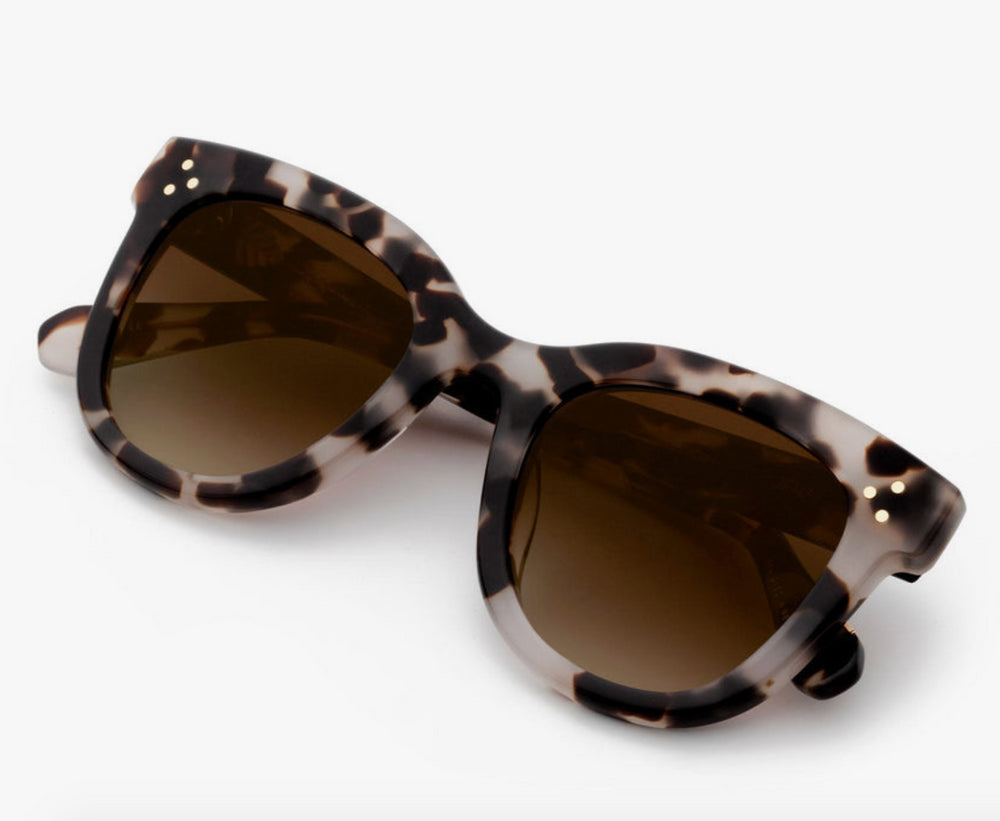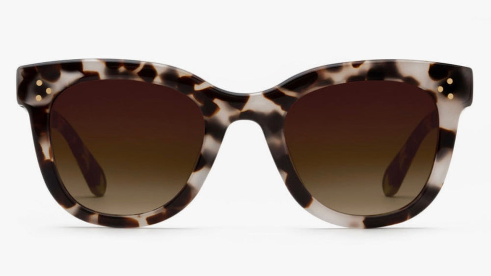 These stylish oversized cat-eye sunglasses feature a luxurious tortoiseshell acetate frame in creamy beige and dark brown tones. The frames have a bold, chunky silhouette with subtle gold stud detailing at the temples. The gradient brown lenses complement the frame color perfectly, and the classic saddle bridge adds a refined touch. The overall design strikes a beautiful balance between vintage glamour and modern sophistication.