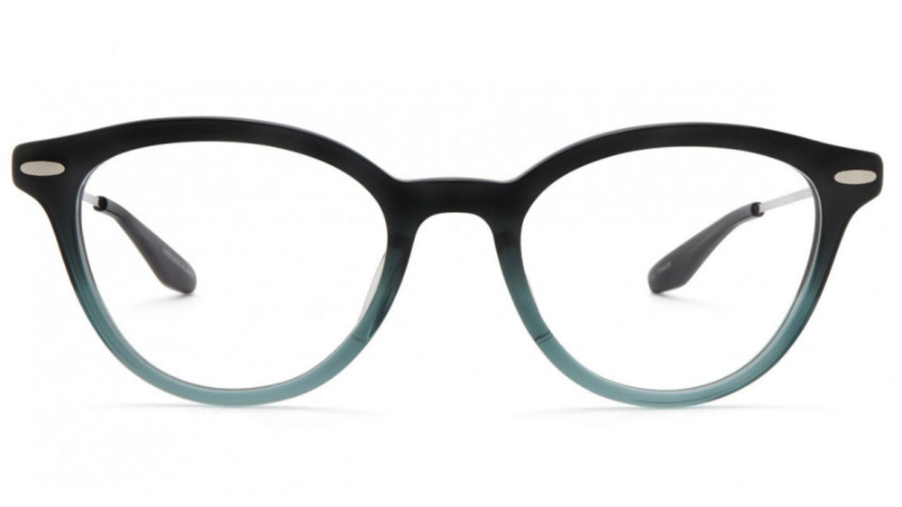 Stylish round frames featuring an elegant ombre gradient from black to teal blue at the bottom. The frames have a modern, sophisticated look with a gentle fade effect that adds visual interest. The design includes metallic accents at the hinges and maintains a clean, contemporary aesthetic suitable for both professional and casual wear.