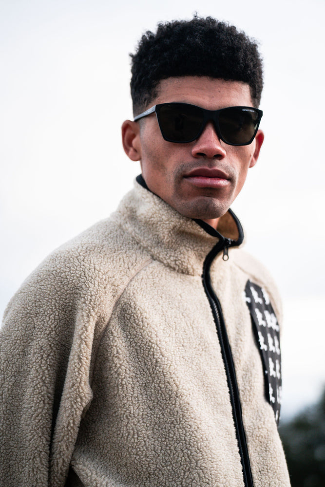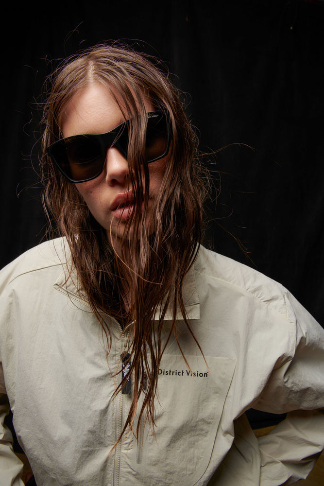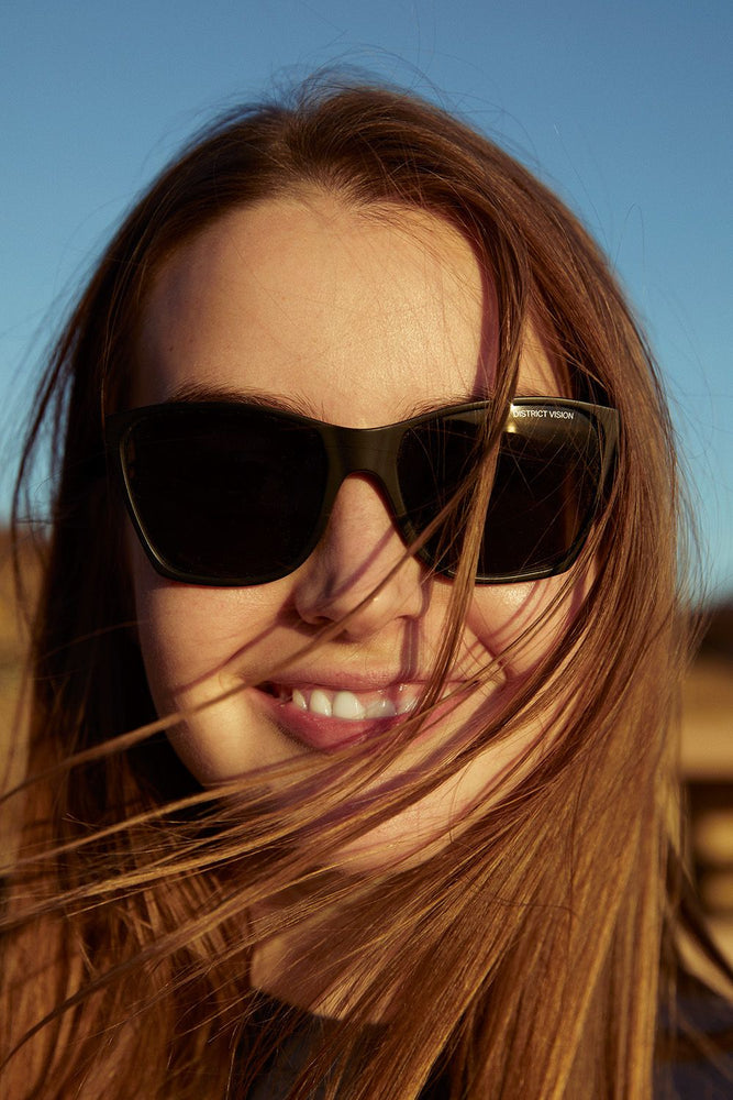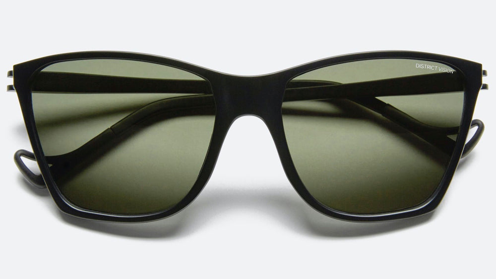 Modern minimalist sunglasses in a sleek rectangular shape with a matte black finish. The design features clean lines with subtle detailing at the temples. The frame has a contemporary athletic aesthetic with green-tinted lenses that offer excellent sun protection. The sunglasses appear to be designed for both style and performance use, with durable construction and a versatile unisex appeal.