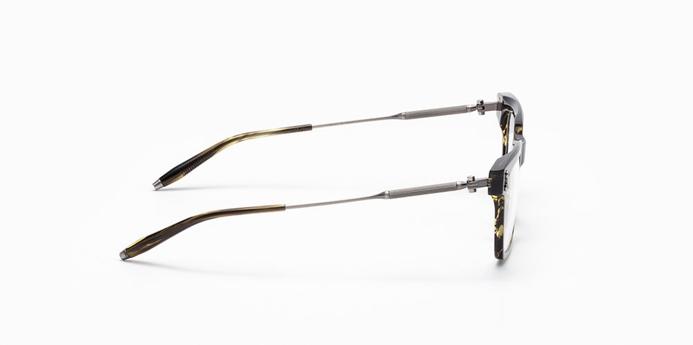 These are sophisticated rectangular eyeglasses featuring a striking tortoiseshell pattern with golden-brown striations. The frames have a contemporary squared-off design with clean lines and a substantial presence. A subtle metallic detail is visible at the temples, adding a refined accent to the otherwise classic design. The frames exhibit excellent build quality with a premium finish, suggesting both durability and style. The proportions are well-balanced, making them suitable for various face shapes while maintaining a professional appearance.