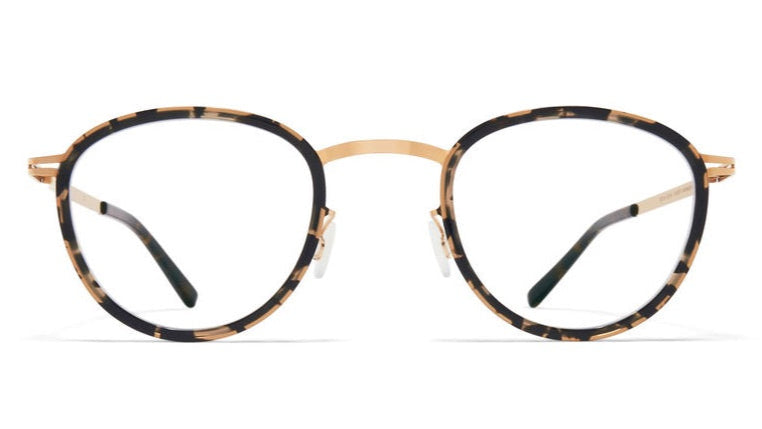 These elegant round frames feature a sophisticated combination of tortoiseshell acetate rims with delicate gold metalwork. The design showcases a harmonious blend of vintage and modern aesthetics, with thin metal temple arms and a refined nose bridge system. The tortoiseshell pattern displays subtle variations of brown and amber tones, while the gold metal elements add a luxurious touch. The perfectly circular lenses are housed within a carefully crafted frame that maintains a lightweight and minimalist profile, making these glasses both stylish and comfortable for everyday wear.