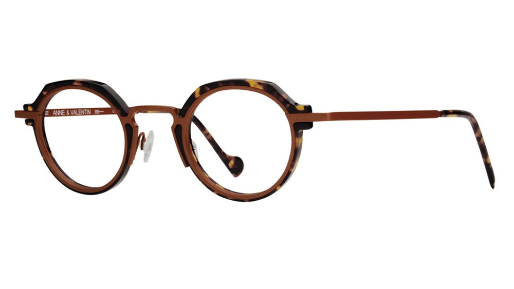 These elegant round frames feature a sophisticated tortoiseshell acetate rim combined with bronze-colored metal components. The design showcases a distinctive vintage-inspired aesthetic with modern elements, including delicate nose pads and slim temple arms. The frame combines both metal and acetate materials expertly, creating an interesting textural contrast. The tortoiseshell pattern shows subtle variations in brown and amber tones, while the metalwork maintains a consistent bronze finish throughout. The overall design suggests a refined, intellectual aesthetic suitable for both casual and professional settings.