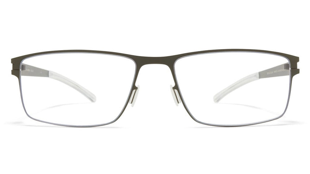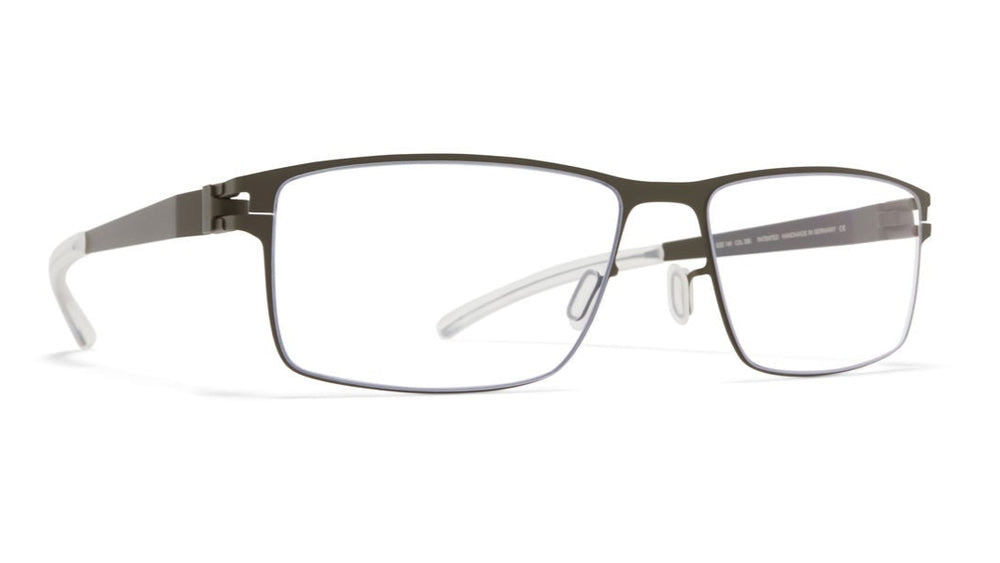 A sleek and minimalist rectangular eyeglass frame with a modern industrial aesthetic. The frame features a matte gunmetal grey finish throughout, with slim temples and a clean-lined design. The semi-rimless bottom adds lightness to the professional look, while the adjustable nose pads ensure comfortable fit. The frames understated design makes it highly versatile for both business and casual wear, with excellent build quality typical of high-end European eyewear.