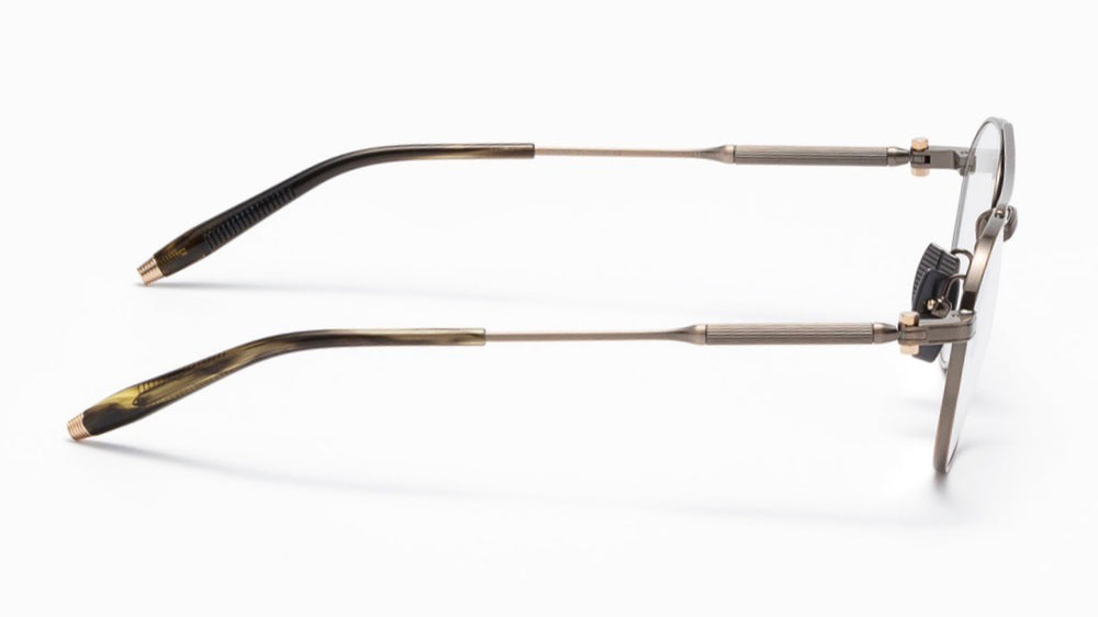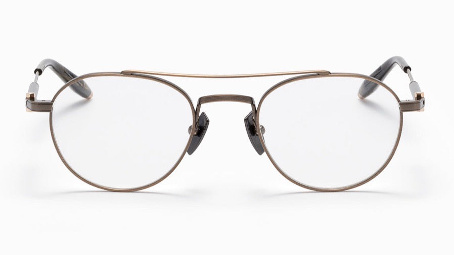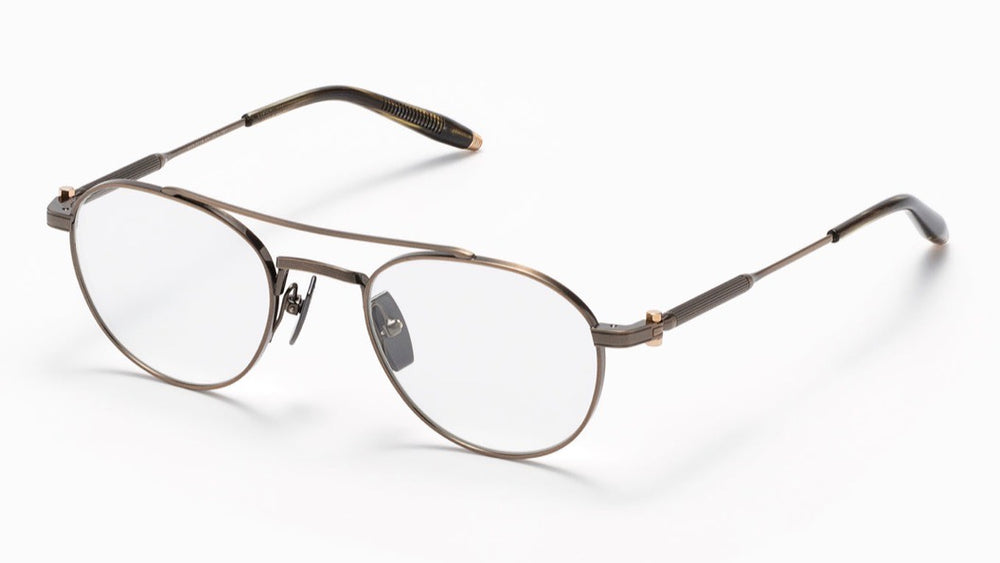 Classic aviator-style prescription frames featuring a refined bronze metallic finish throughout. The design showcases delicate double bridge construction with adjustable nose pads for comfort. The thin metal frame maintains a lightweight, sophisticated appearance while offering durability. Temple arms feature subtle spring hinges and textured tips for secure fit. The overall aesthetic balances vintage aviator styling with contemporary minimalist details.