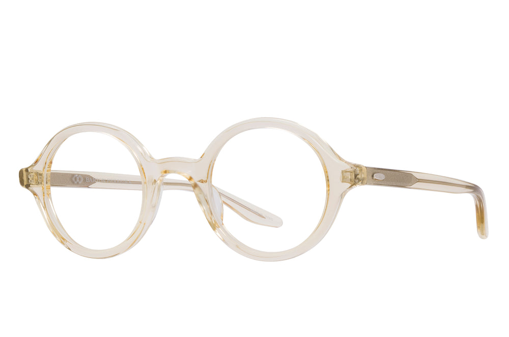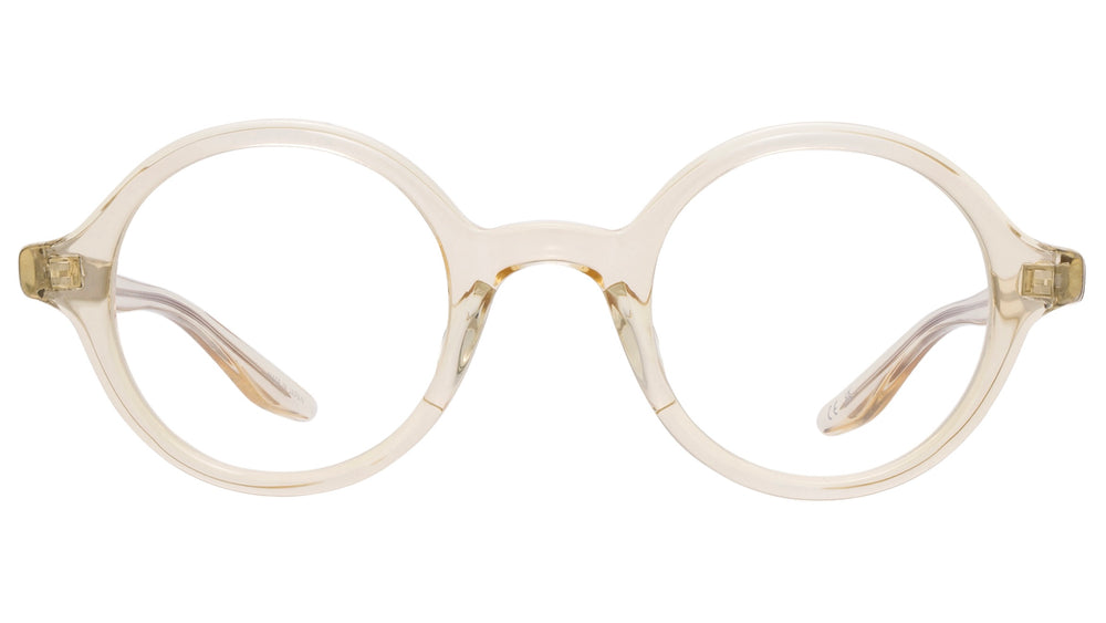 A sophisticated round-frame optical design in translucent champagne-colored acetate. The frames feature a classic round silhouette with a medium-thick profile and an understated vintage-inspired aesthetic. The translucent material gives them a light, airy appearance while maintaining structural integrity. The temples seamlessly integrate with the front frame, creating a cohesive look. These glasses have a refined, intellectual appeal that would complement both casual and formal attire.