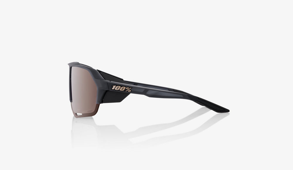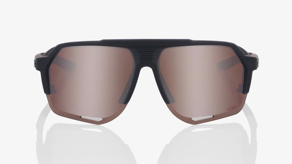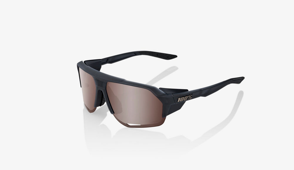Modern sport-style sunglasses with a bold half-frame design featuring a matte black upper frame that transitions into frameless brown-tinted lenses. The angular, contemporary design has protective side shields and aerodynamic styling typical of performance eyewear. The lenses appear to have a slight mirror effect and wrap around slightly for enhanced coverage and protection. Clean lines and minimal branding create a sleek, athletic aesthetic suitable for outdoor activities and sports.