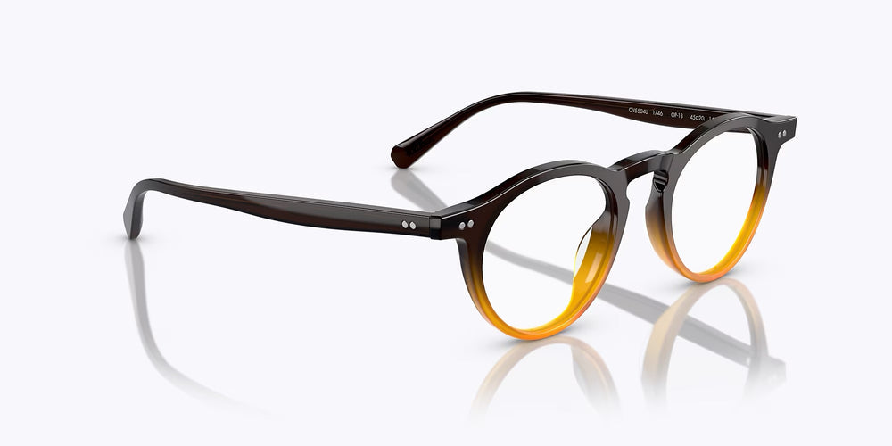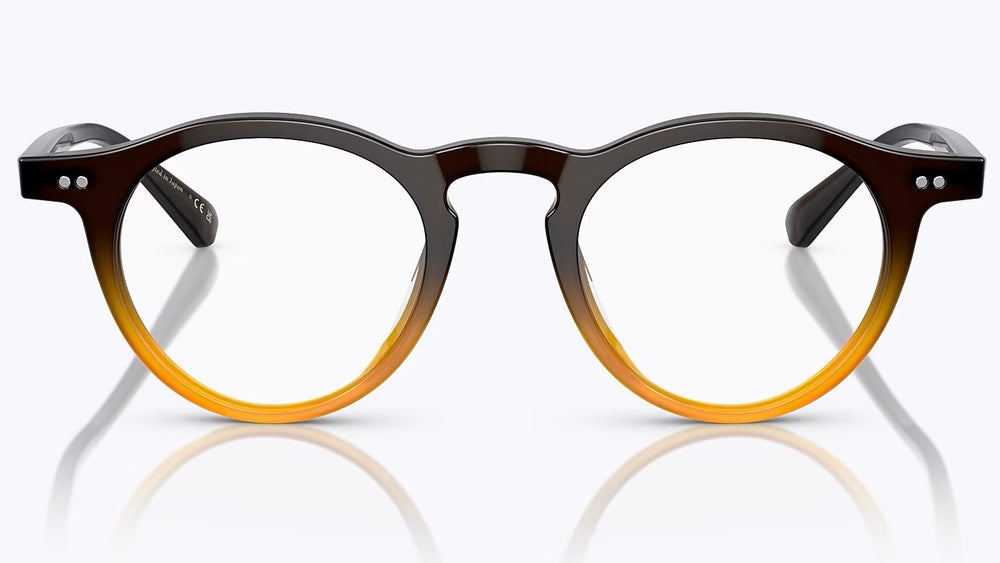 Stylish round prescription frames featuring a sophisticated ombre gradient from dark brown at the top to amber orange at the bottom. The frame has a vintage-inspired silhouette with elegant double rivets on each side. The design showcases a perfect balance between classic and contemporary styling with its smooth color transition and refined proportions. The rounded lenses are complemented by a comfortable saddle bridge and sturdy temple arms that maintain the same tortoiseshell gradient coloring throughout.