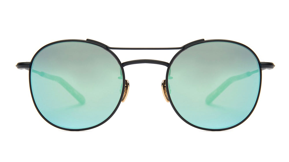 These stylish round sunglasses feature a sleek black metal frame with a minimalist design. The lenses are a stunning mint green color with a mirrored finish, creating an eye-catching contrast against the dark frame. The thin profile and classic round shape give these sunglasses a timeless yet modern appeal. The adjustable nose pads ensure a comfortable fit, while the slim temple arms maintain the overall lightweight aesthetic. The design strikes a perfect balance between sophistication and casual wear, making them versatile for various occasions.