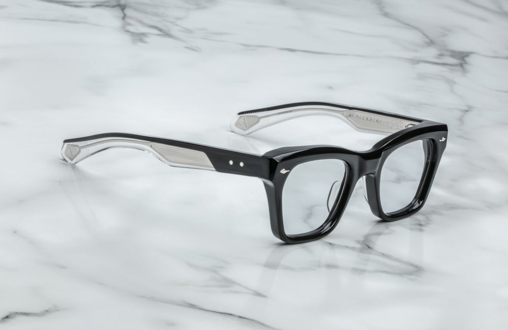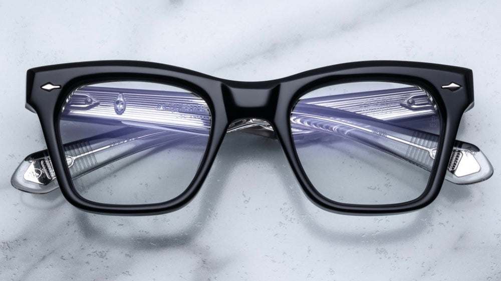 These are premium bold square glasses with a distinctive chunky frame design reminiscent of mid-century intellectual style. The frames feature clean geometric lines with sharp corners and a substantial acetate construction. The thick temples and pronounced bridge create a striking architectural presence. The glossy black finish adds sophistication while maintaining versatility. The oversized square silhouette commands attention while maintaining a timeless appeal suitable for professional and artistic settings.